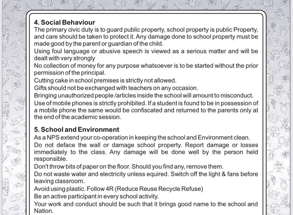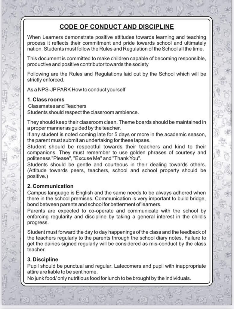 NPS SCHOOL CONDUCT AND DISCIPLINE